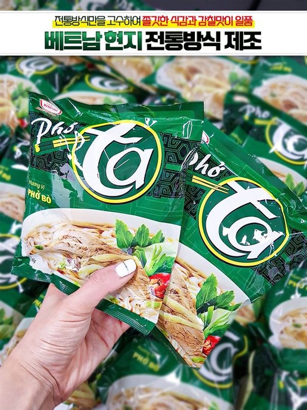 ★ 빈타이 포타 베트남 소고기맛 쌀국수 ★ 60년 전통 베트남 쌀국수 브랜드 ''빈타이'' 베트남 현지에서 먹던 맛 그대로~~ 빈타이 포타 쌀국수는 원료부터 생산까지 꼼꼼하게 엄선! 베트남 전통방식을 고수하여 만들어 현지의 맛을 그대로 즐기실 수 있어요! 쫄깃한 식감과 감칠맛 까지~~ 인스턴트 같지 않은 담백하고 깔끔한 깊고 진한 풍미를 느껴보세요! 누구나 부담없이 기호에따라 간편하게~ 더욱 낮아진 나트륨량으로 건강하고 맛있게~ 저나트륨/저칼로리로 다이어트 한끼 식사로도 OK~ 뜨거운 물 부어만 주고 3분이면 OK~ 취향따라 양파, 고기, 숙주 등등 올려서 드시면 더욱 맛있어요! 놓치지 마시고 꼭 드셔보세요💛