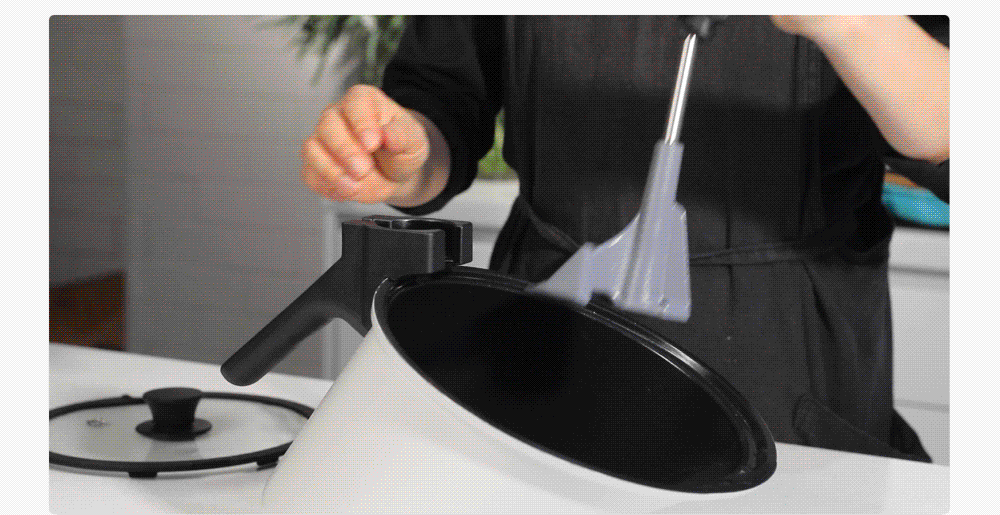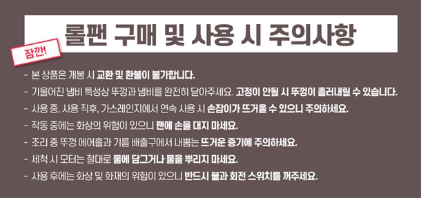 팬: 알루미늄, 내외부 세라믹코팅 / 뚜껑: 실리콘, 강화유리 / 모터박스: PA(나일론)