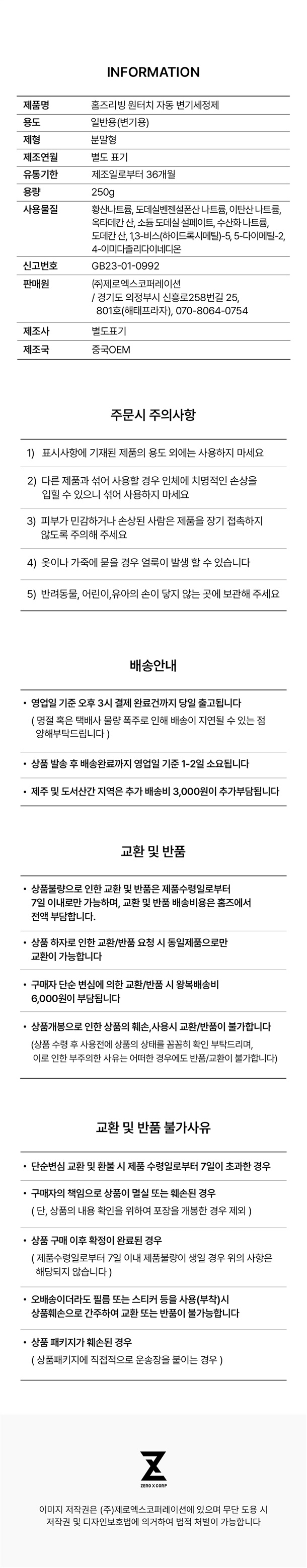 · 배송비 : 3,000원(1개 마다 기본배송비 반복 부과)