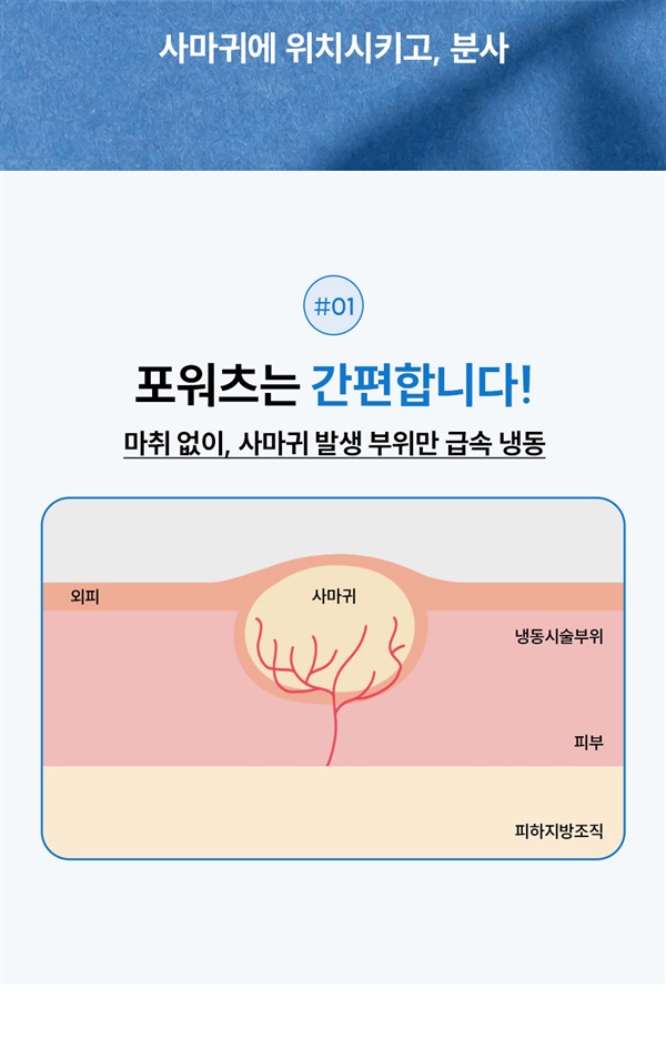 급속냉각을 통한 제거로, 목이나 얼굴쪽은 피부가 약해 화상의 위험이 있습니다.