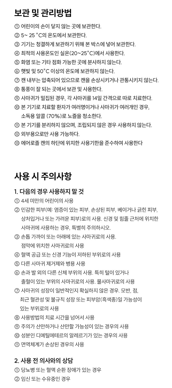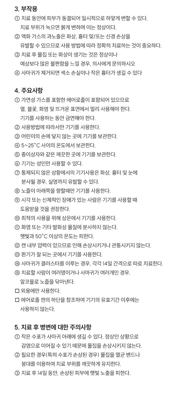목 아래 몸통부위의 사마귀까지는 사용이 가능한 점 또한