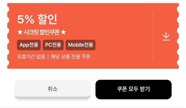 3) 시크릿 5%쿠폰 다운받기