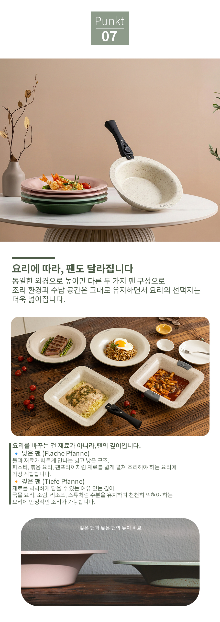 원형 낮은팬과 깊은팬은