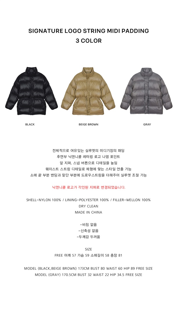 닉앤니콜 3년째 사랑받고있는 베스트 미디 패딩!
