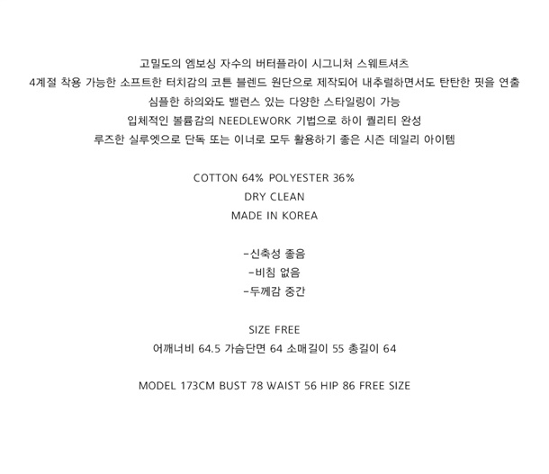버터플라이 그래픽이 포인트이며, 고밀도 실크 스크린 방식의 나염 프린팅으로 선명하고