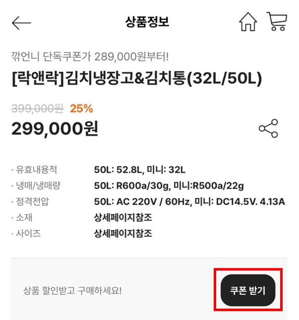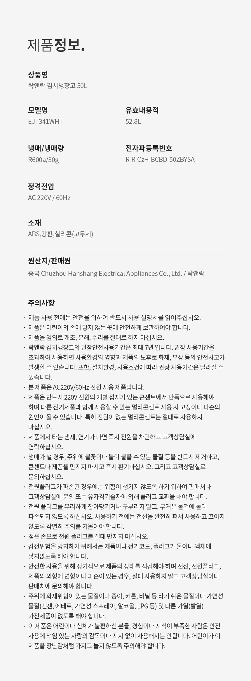 · 단순변심 교환/반품비용(김치냉장고50L): 편도 10,000원 / 왕복 20,000원