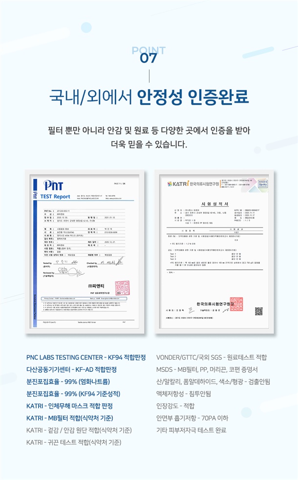 ※ 원데이핏을 제외한 옵션은 모두 KF94 인증 제품이며,
