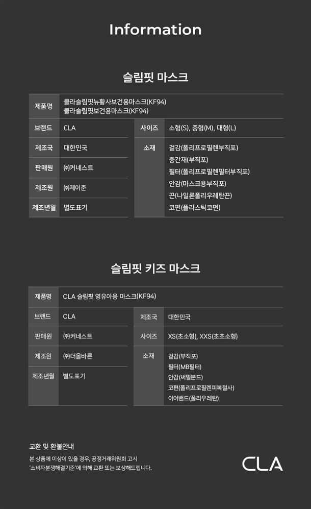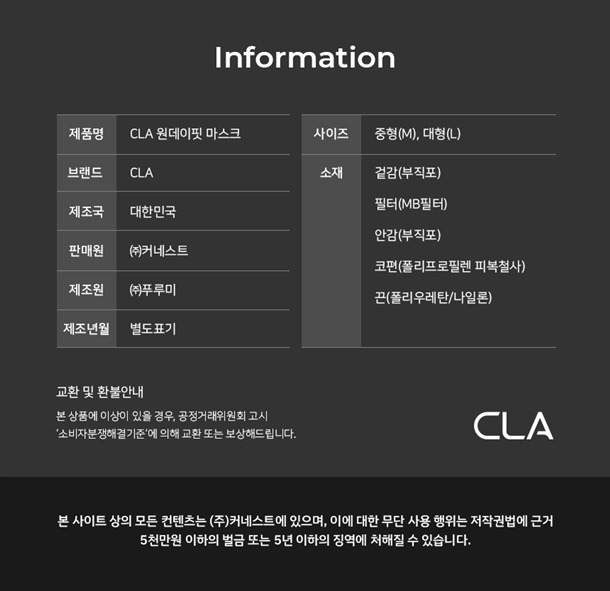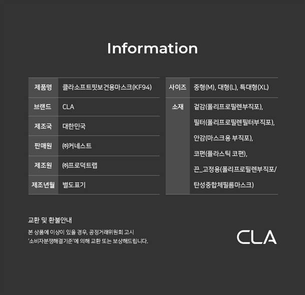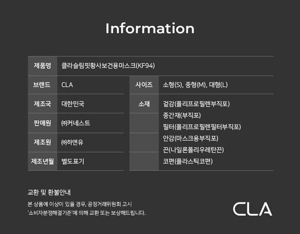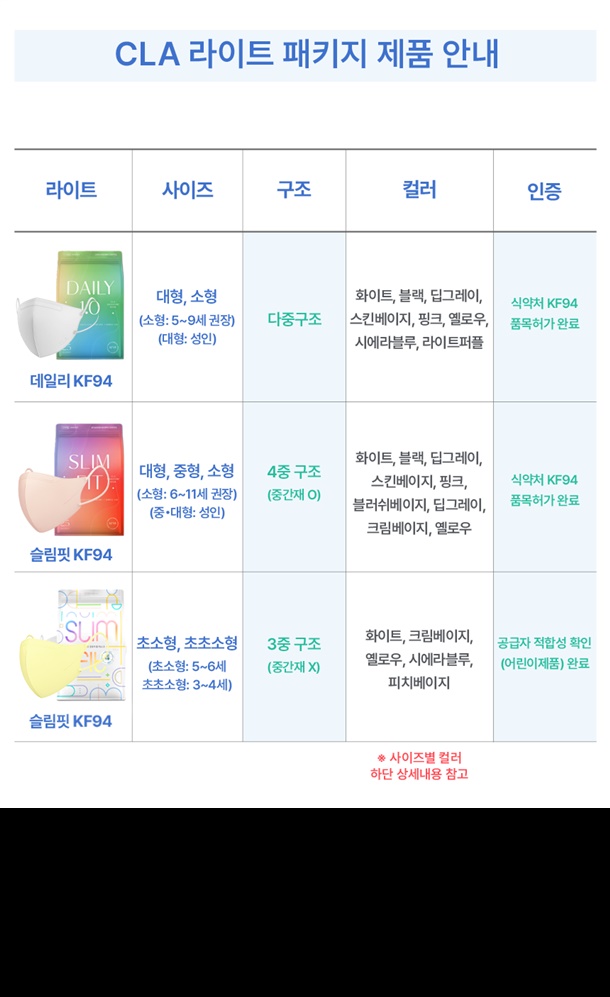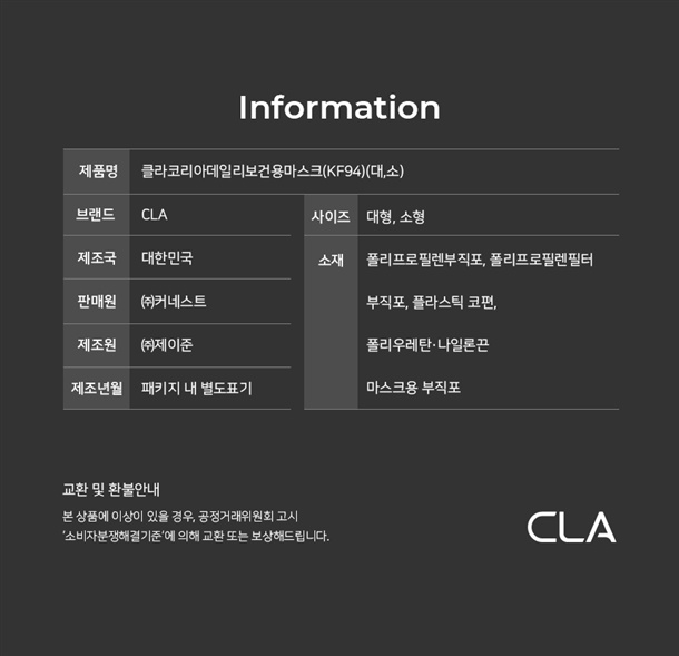 ✅CLA 데일리 마스크 25매 [KF94 라이트패키지]