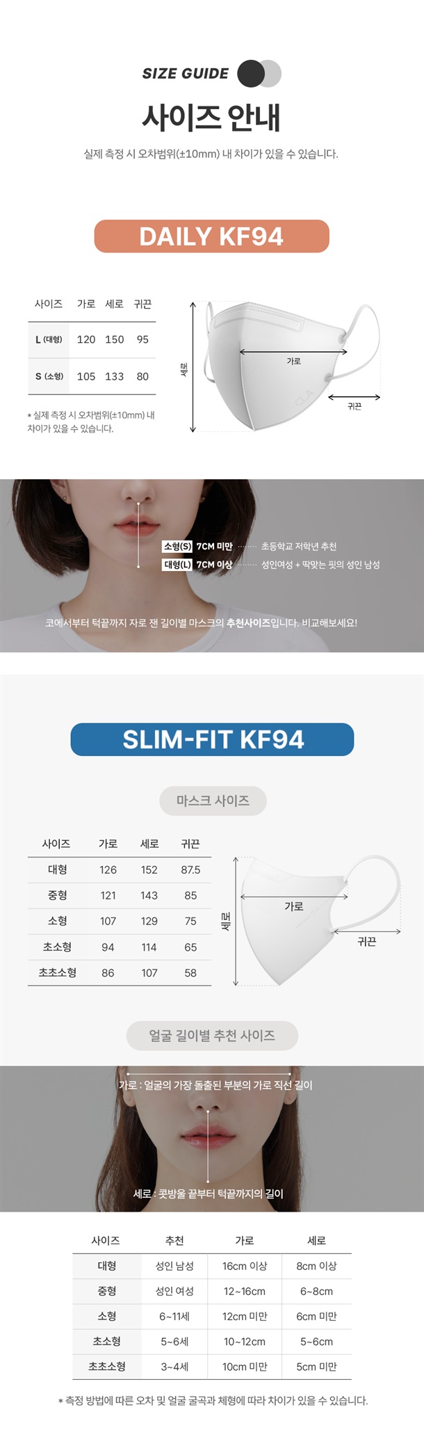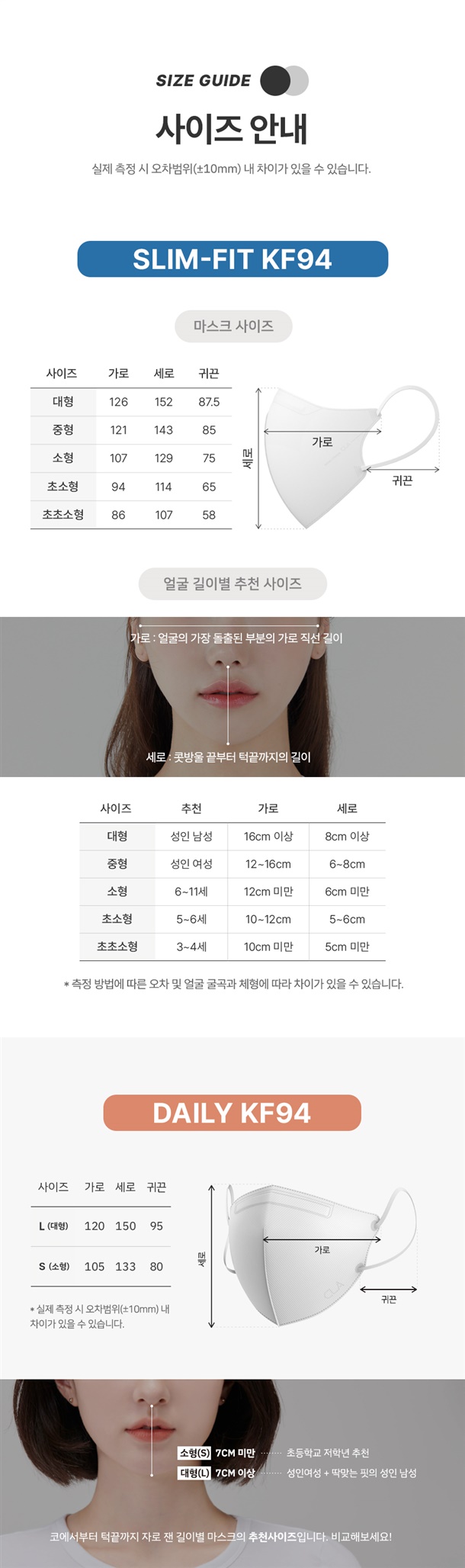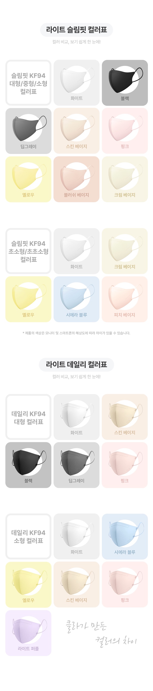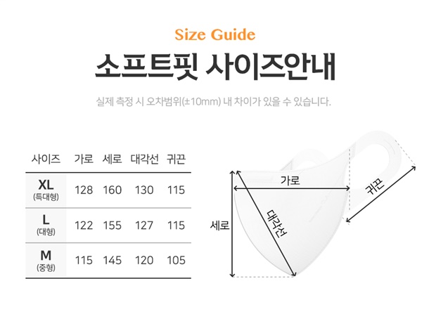 ※ 원데이핏을 제외한 옵션 모두 KF94 입니다.