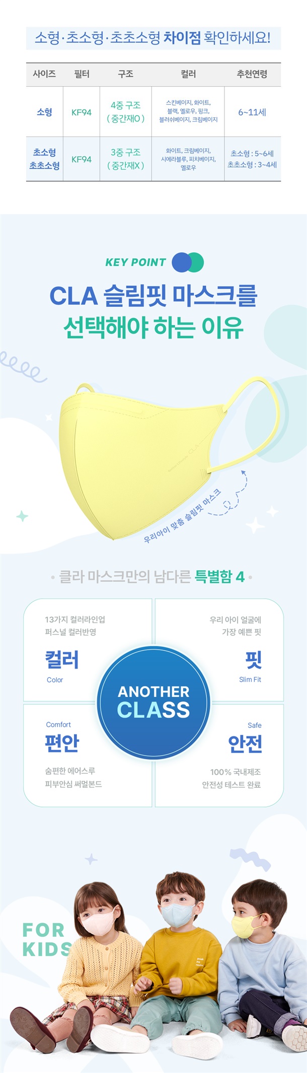 CLA 슬림핏 키즈 마스크 25매
