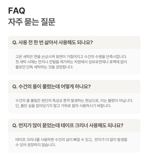 - 처음 사용 시 단일 단독 세탁 후 사용하세요.