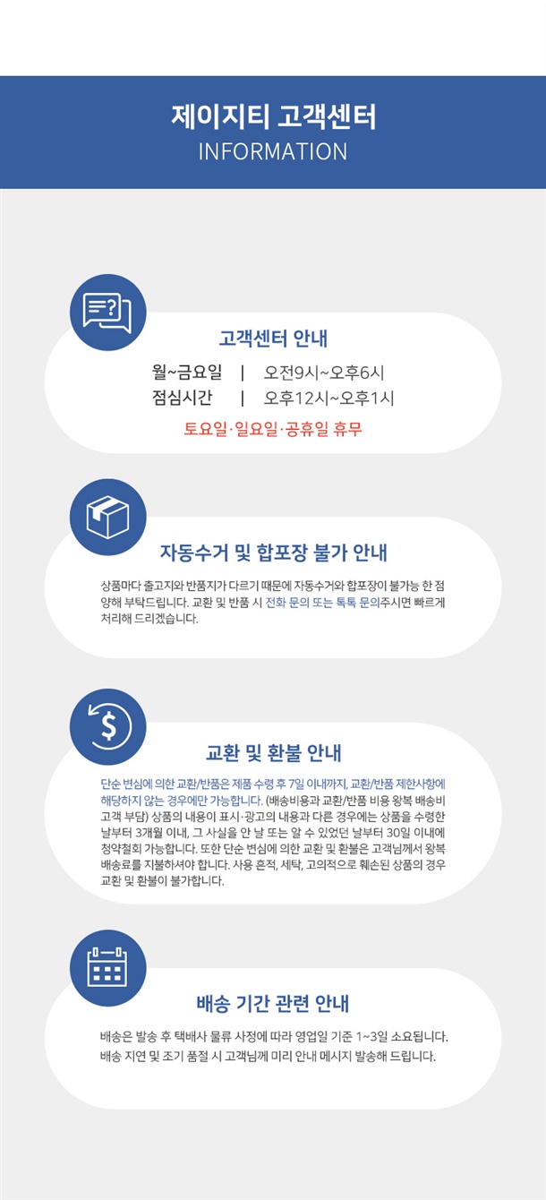 · 배송비 : 5,000원(1개 마다 기본배송비 반복 부과)
