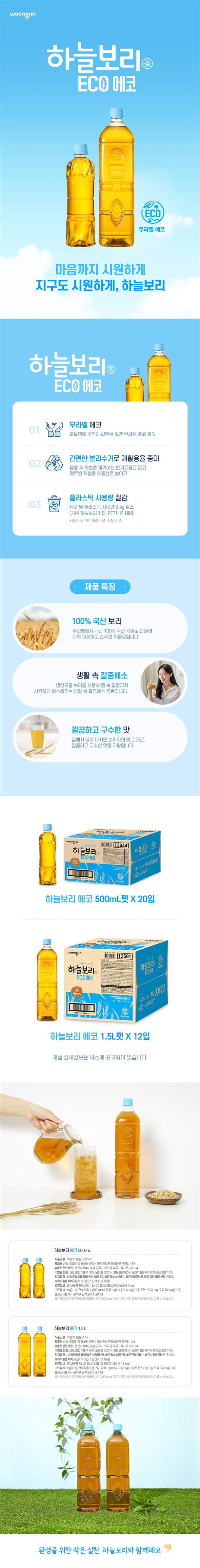 하늘보리 에코는 라벨이 없는 ‘무라벨’ 제품입니다.