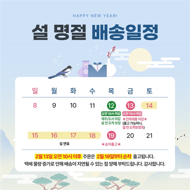 · 영업일 오전 11시 전 결제건 기준, 영업일 1~3일내 출고