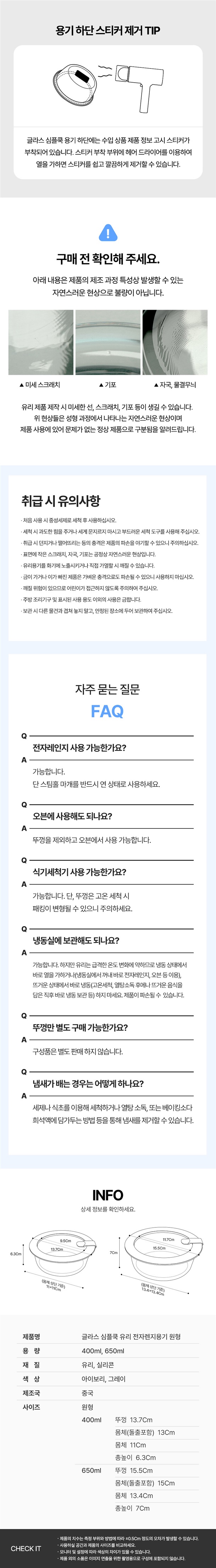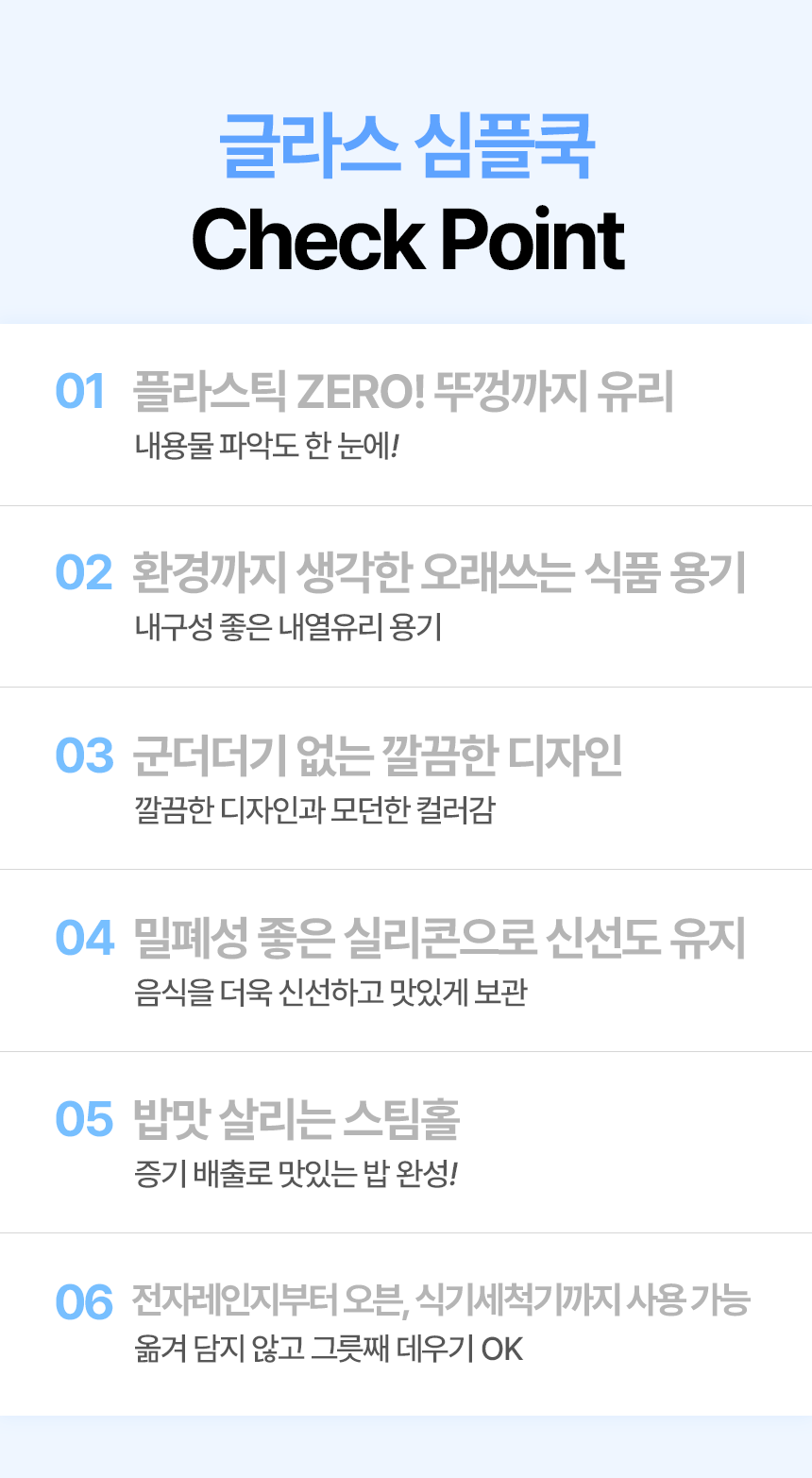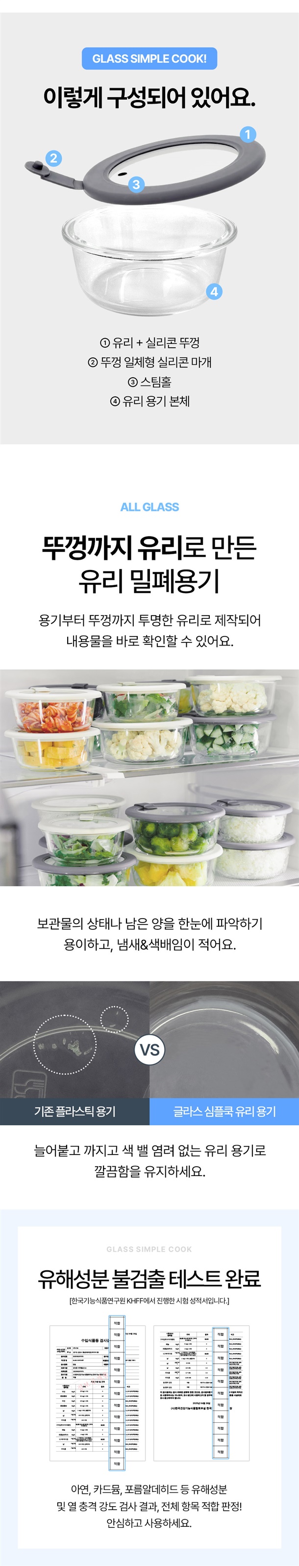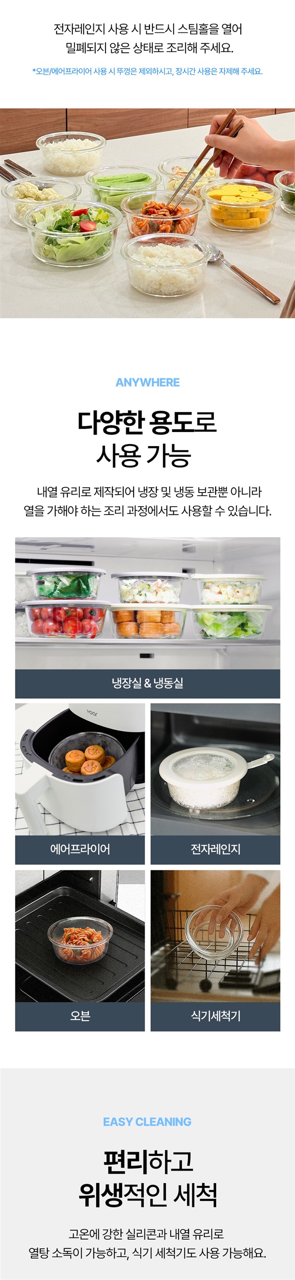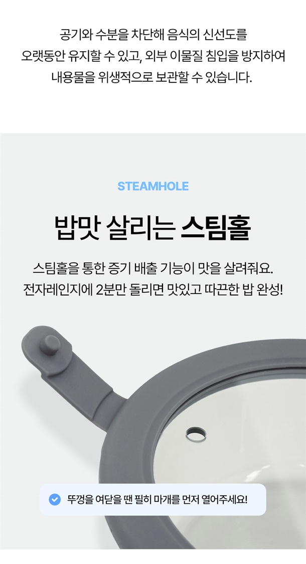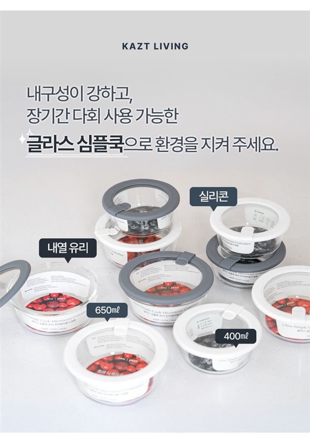 냉동밥용기 - PP(내열온도 100~110℃) / 글라스용기 - 유리, 실리콘