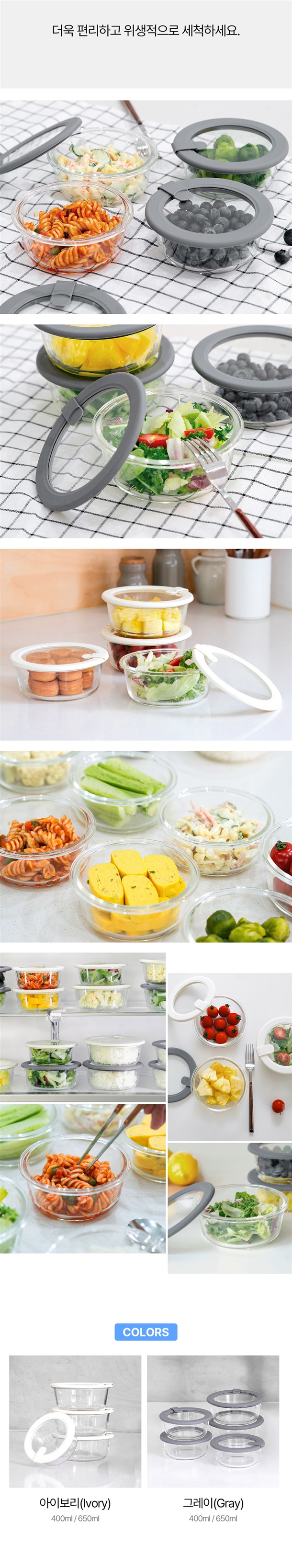 냉동밥용기 - 아이보리, 인디핑크, 라이트그레이 / 글라스용기 - 그레이, 아이보리