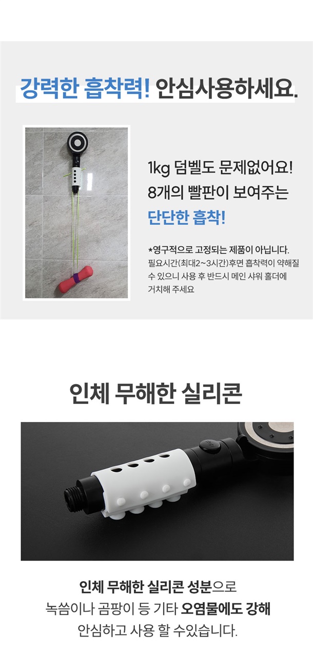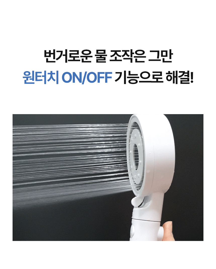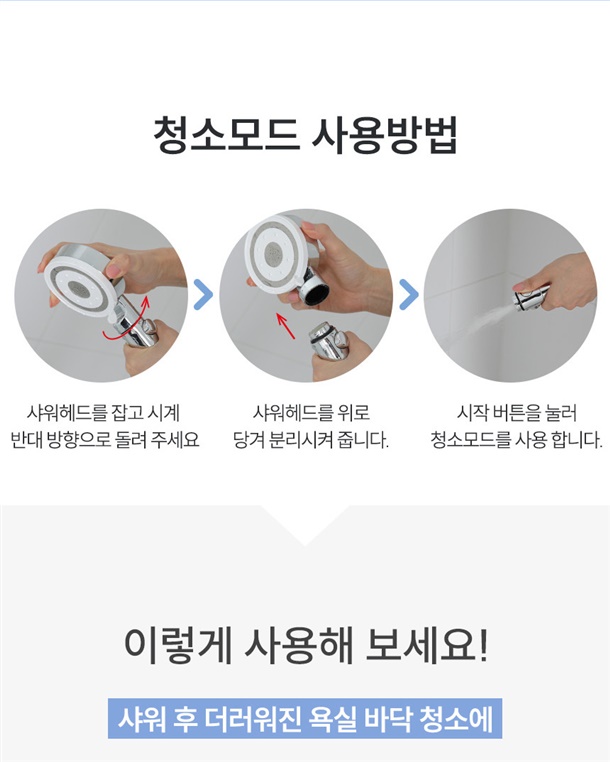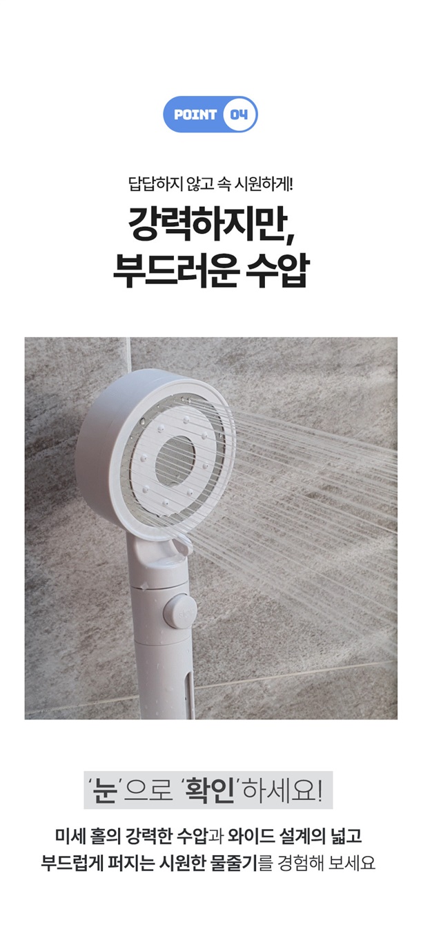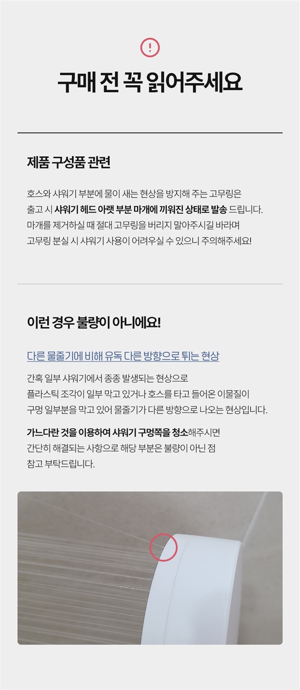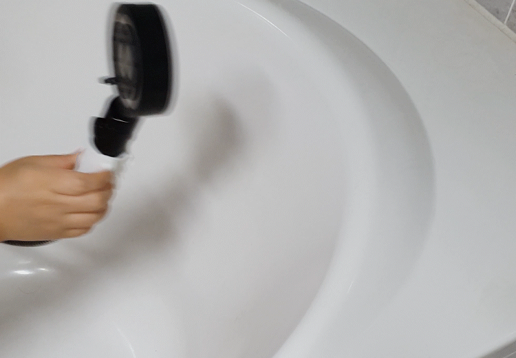 - 샤워기 구멍쪽을 청소하면 해결 (불량X)