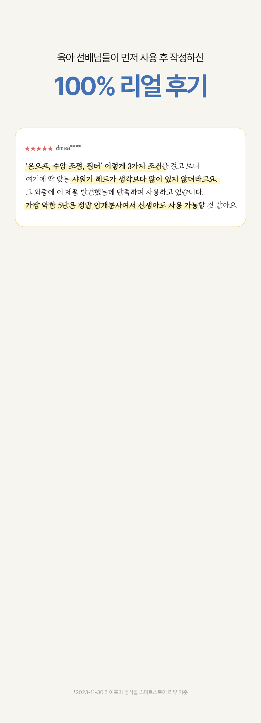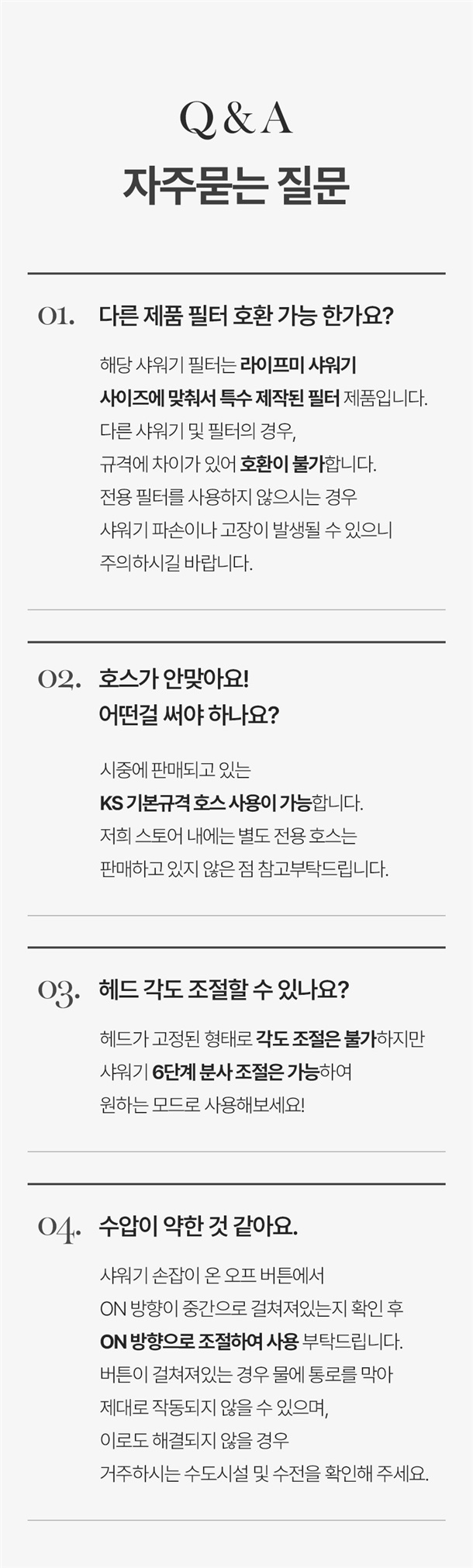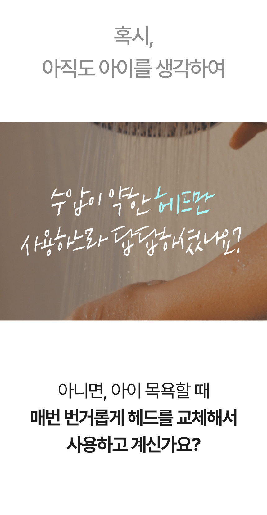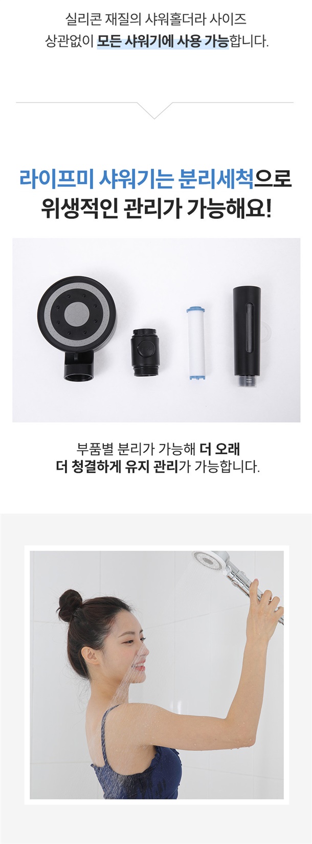 - 샤워기 구멍쪽을 청소하면 해결 (불량X)