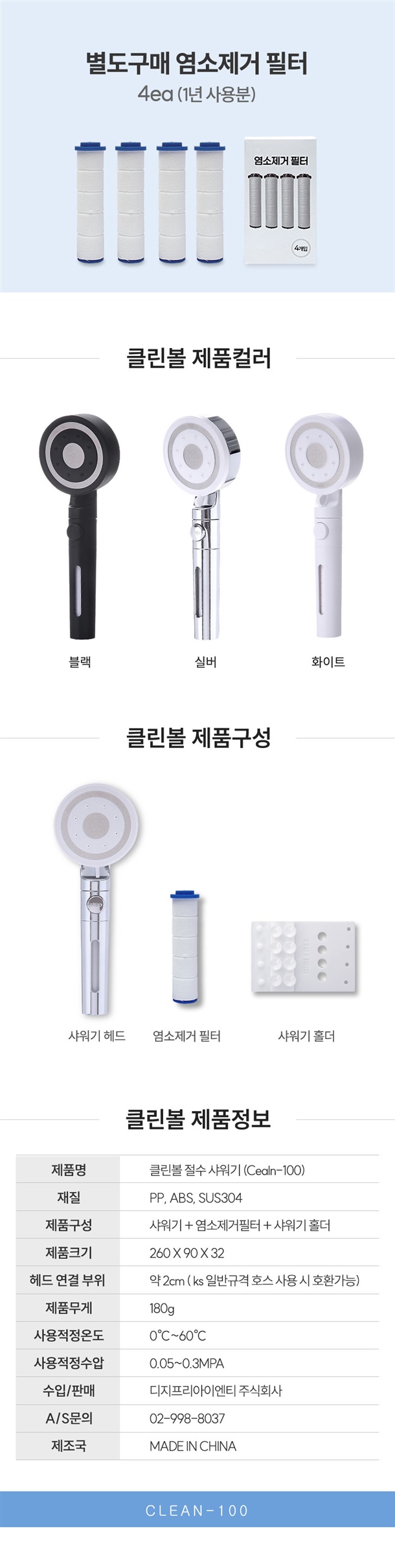 PP, ABS, SUS304 / 화이트, 실버, 블랙