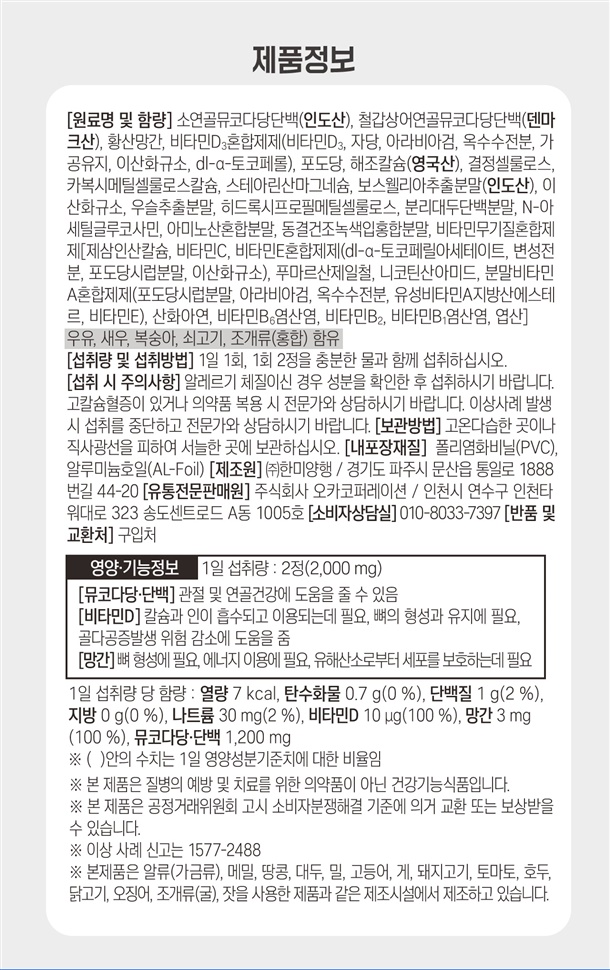 뮤코다당단백 1200mg함유, 순도90%이상 정제된 고품질원료