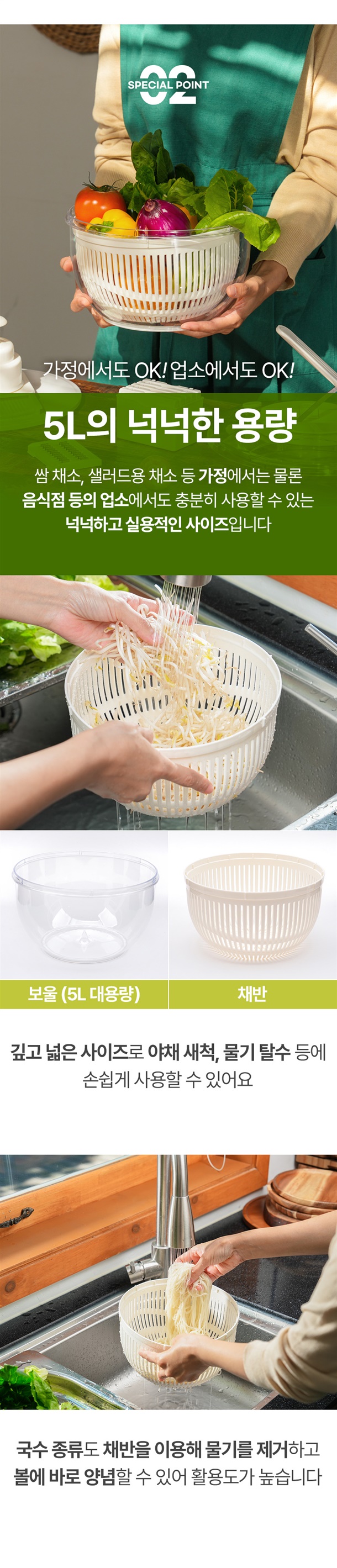 5L넉넉한용량, 원터치방식, 채칼사용, 탈수까지 한번에