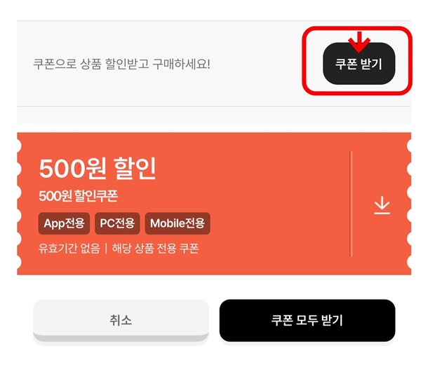 STEP 01. 상단 [쿠폰받기] 버튼 클릭!
