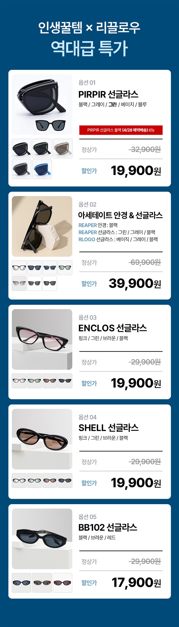 폴더형 선글라스만 원형 케이스 / 나머지 옵션은 기본 케이스