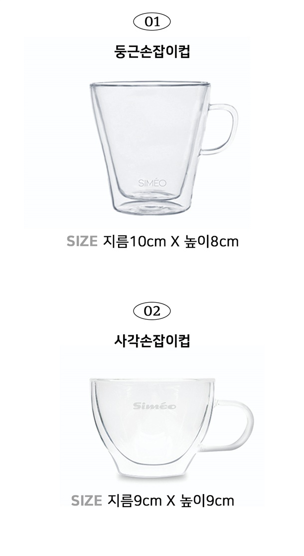 둥근손잡이 : 10 x 8cm / 사각손잡이 : 9 x 9cm