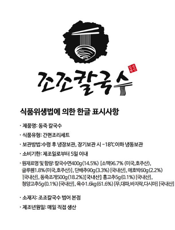 (조개 및 육수는 냉동보관 시 1~2주 이내 섭취 가능하나,