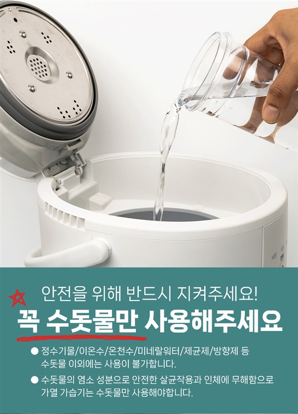 깨끗한 수증기가 빠져나가면 남은 잔여물이 수조에 남는데