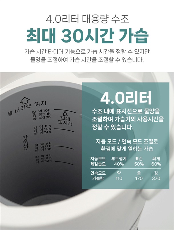 (강) 370mL/h, (중) 170mL/h, (약) 110mL/h