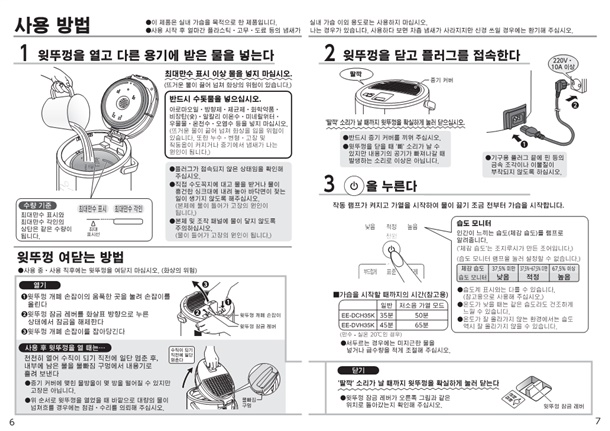 뚜껑에서 냉각되어 65도로 수증기가 나와요.
