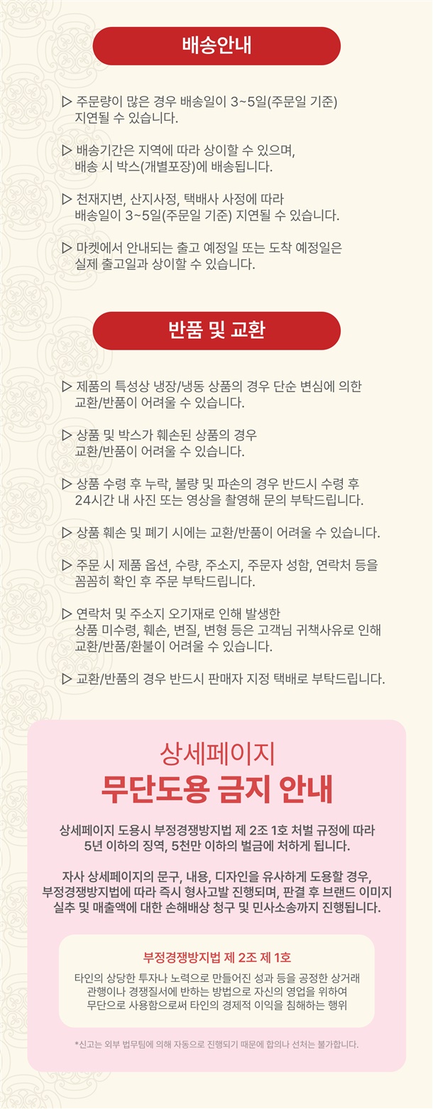 · 배송비 : 3,000원(10개 마다 기본배송비 반복 부과)