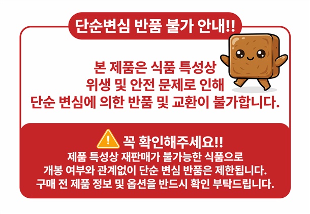 · 교환/반품: 수령일로부터 24시간 이내 가능 (사진 첨부 필수)