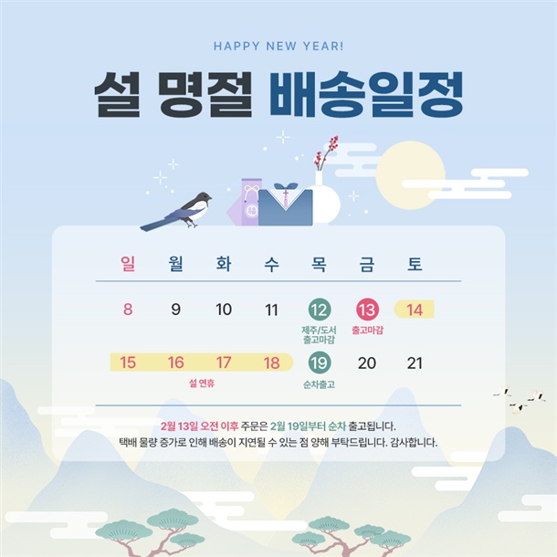 · 배송일 : 평일기준 1~3일이내 출고 예정