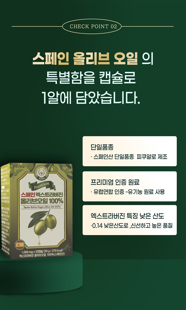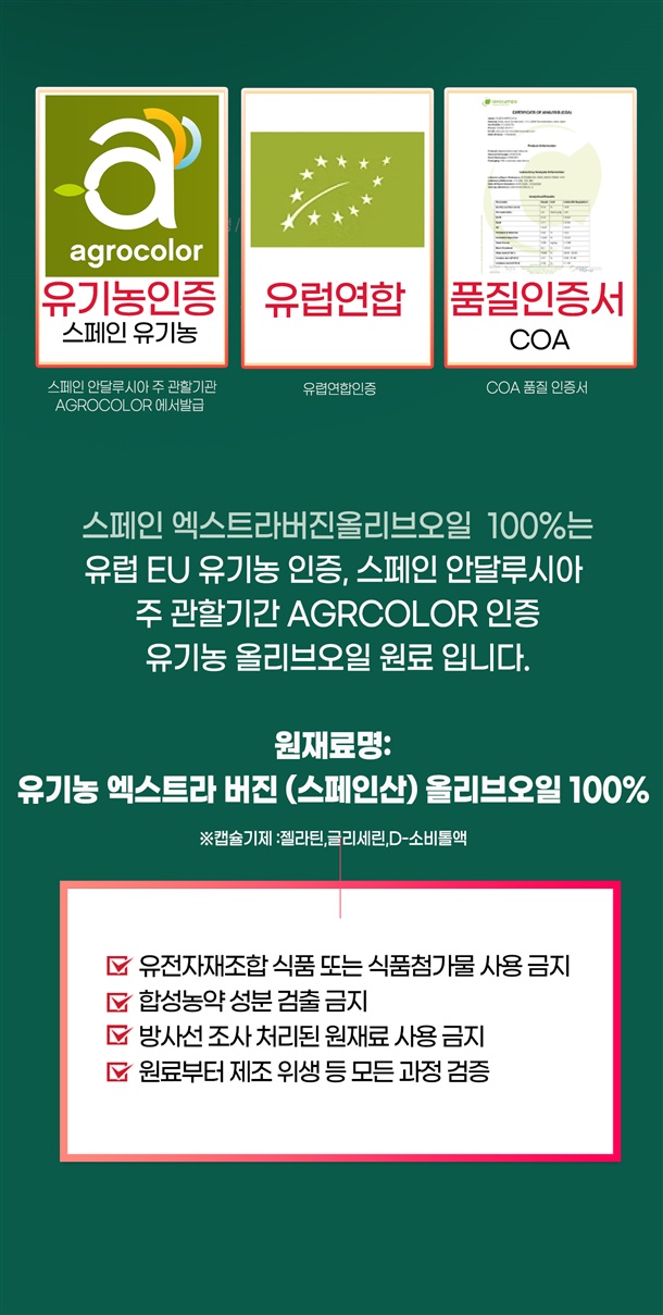 유럽연합인증오일, 유기농 스페인산. 개별캡슐, GMP인증