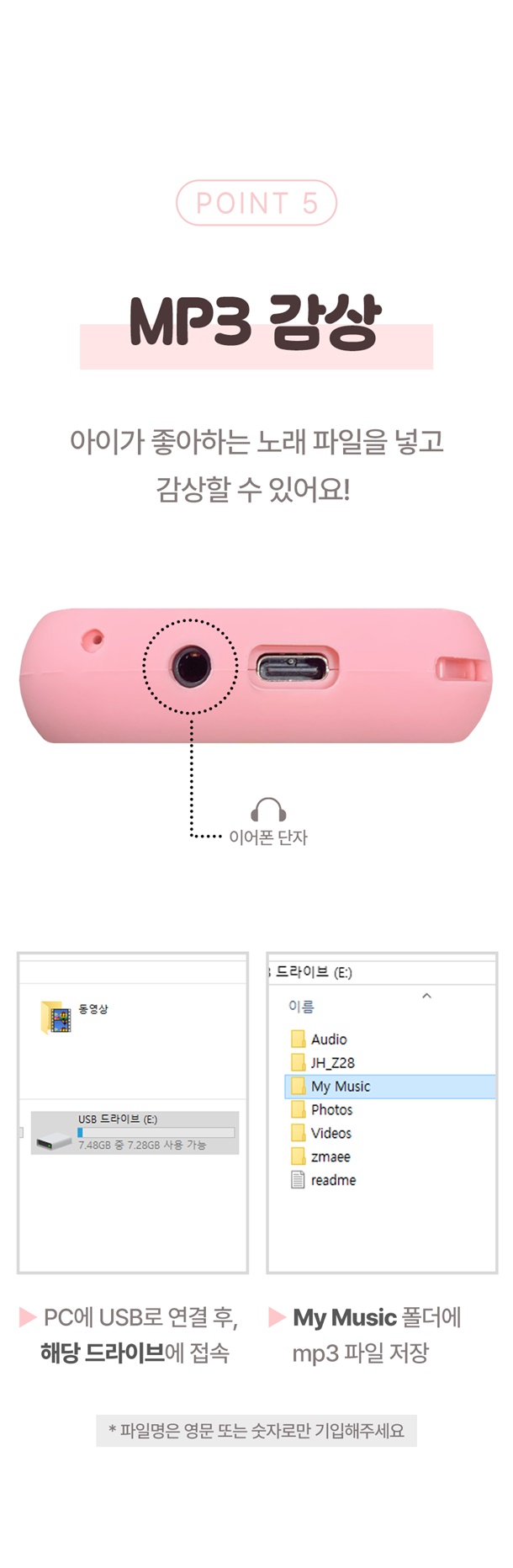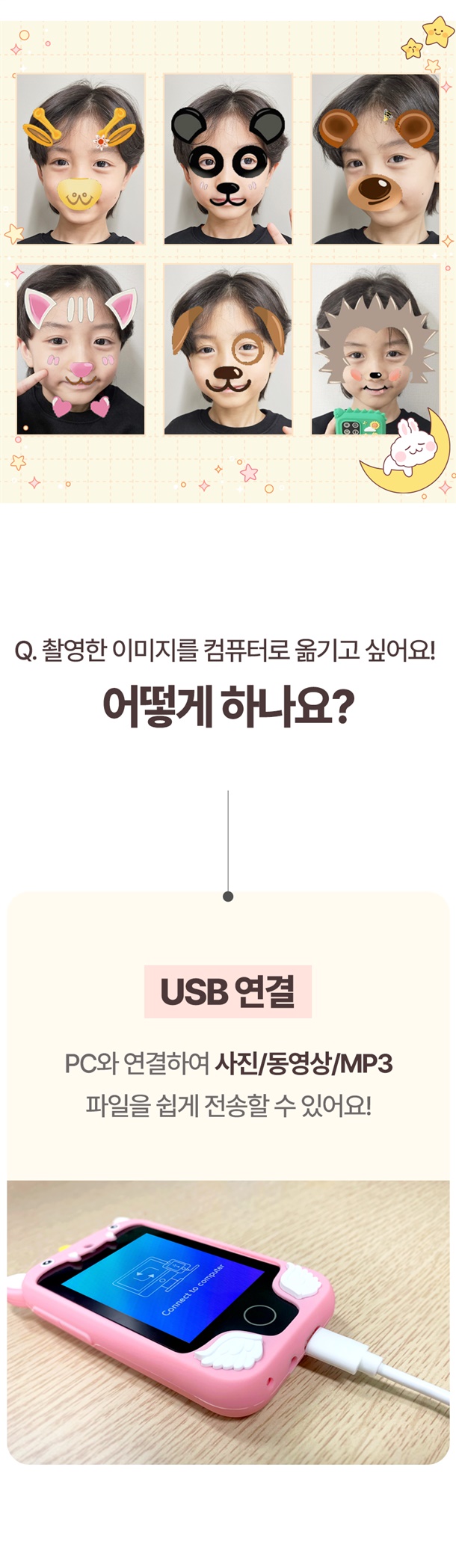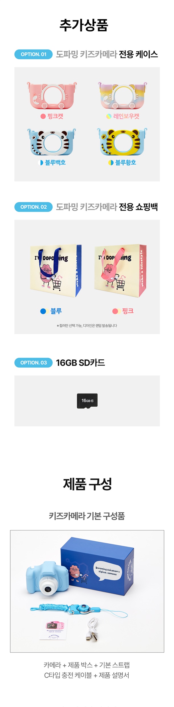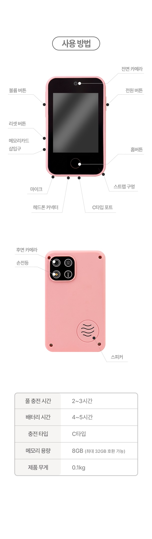 키즈카메라: 16GB / 키즈폰카메라: 8GB (최대 32GB 호환)