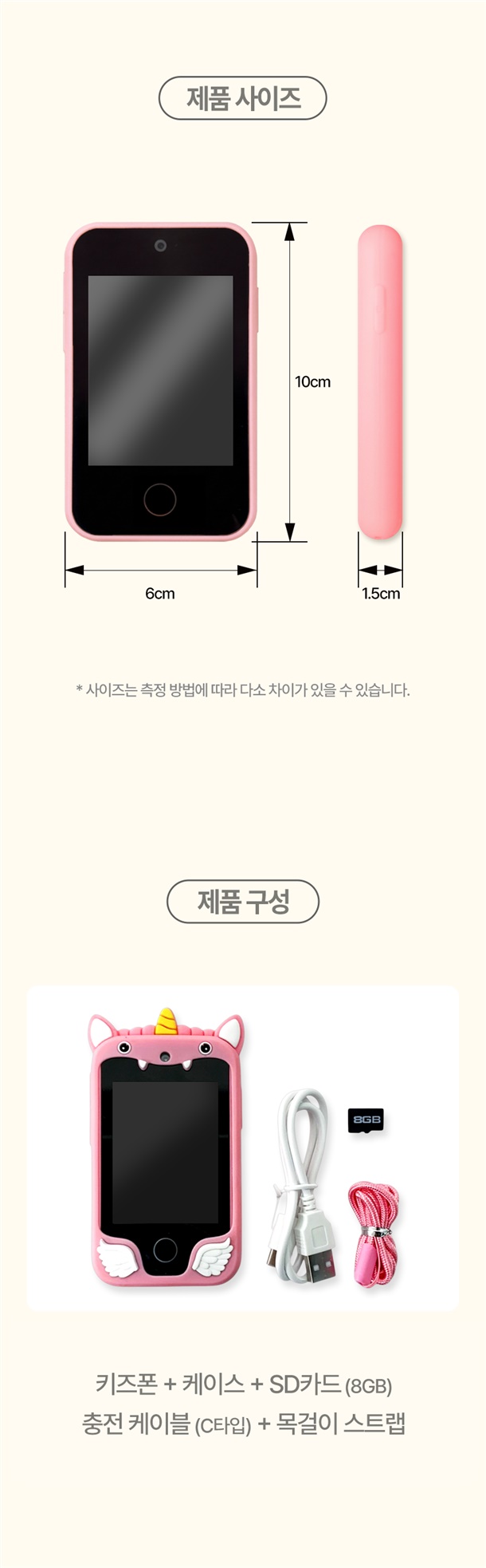 키즈카메라: 83*61*48mm / 키즈폰카메라: 60*10*15mm