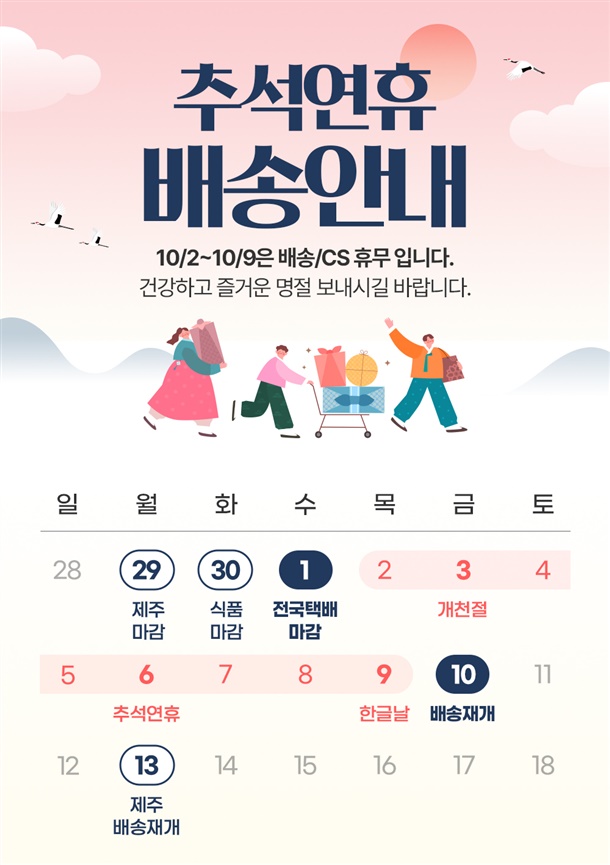 · 배송일 : 주문 후 평일 1~3일내 출고