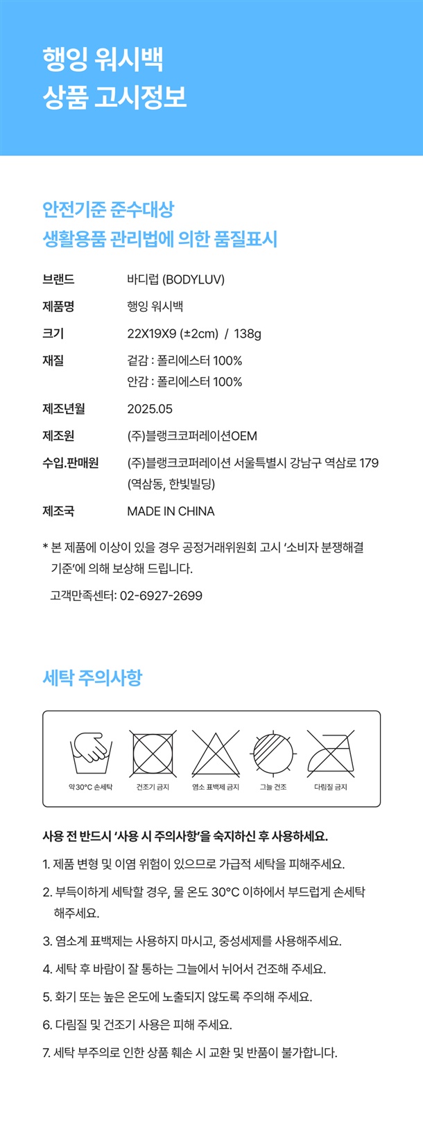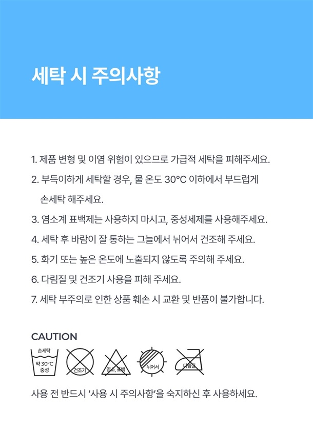 · 교환/반품: 수령일로부터 7일 이내 가능