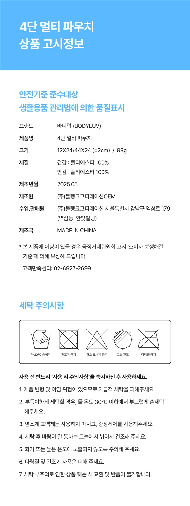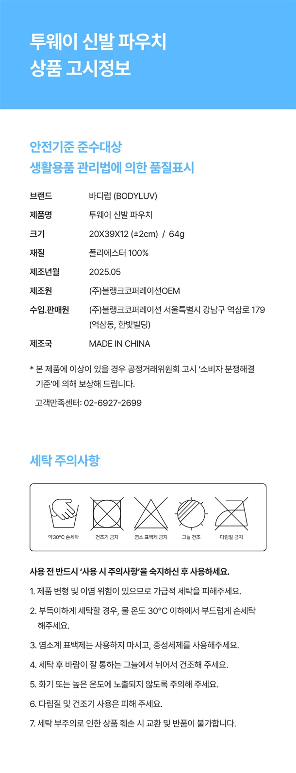 · 단순심 교환/반품 시 왕복배송비 6,000원 고객부담 (개봉 후 불가)