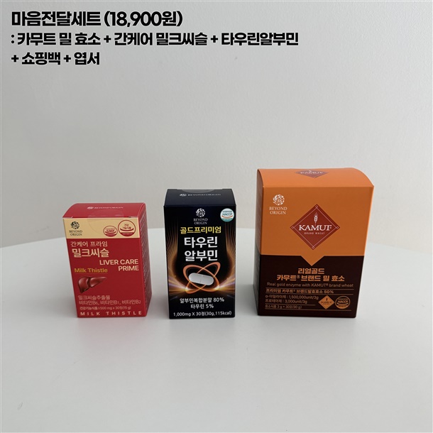 : 카무트효소 + 밀크씨슬 + 타우린알부민 + 쇼핑백 + 엽서