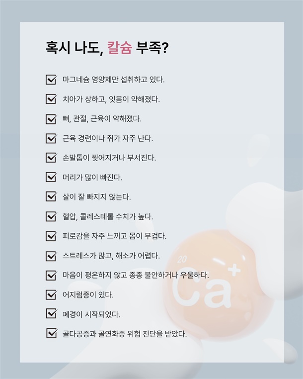 칼디케이는 저녁 식후에, 마그네슘은 자기 전 섭취해주세요.