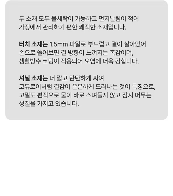 포근한 촉감은 포기 못 하지만, 오염이 걱정되는 분들을 위한 최고의 선택이에요.