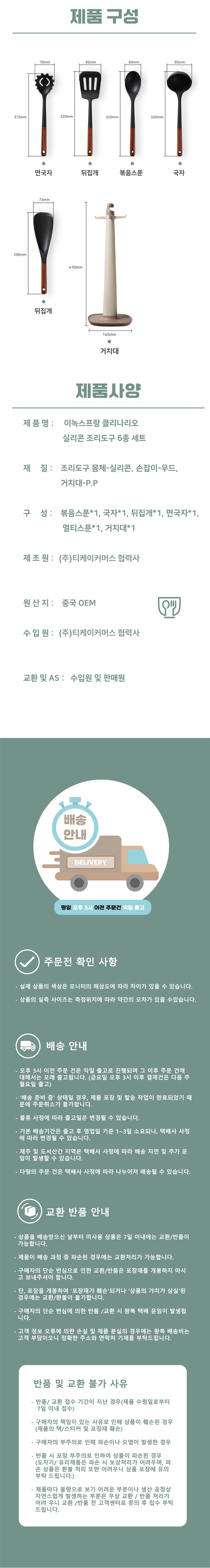 6종세트: 국자+요리스푼+면국자+볶음주걱+뒤집개+거치대