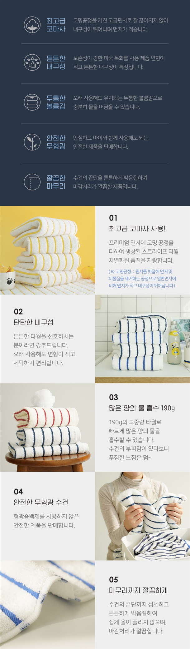 처음 수건을 받으시면 초기불량여부를 먼저 검수해주세요.