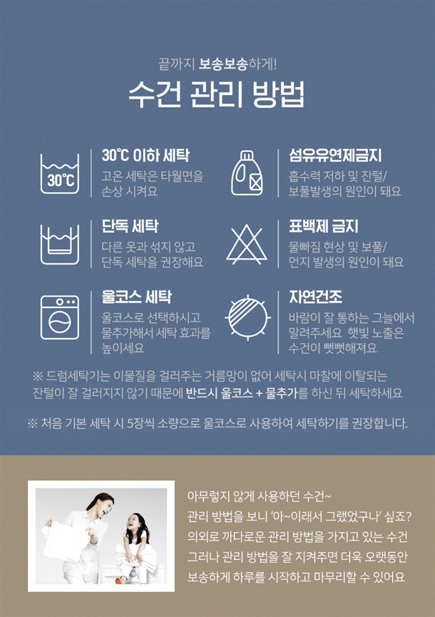 수건은 꼭 5매씩 소량세탁 해주세요!