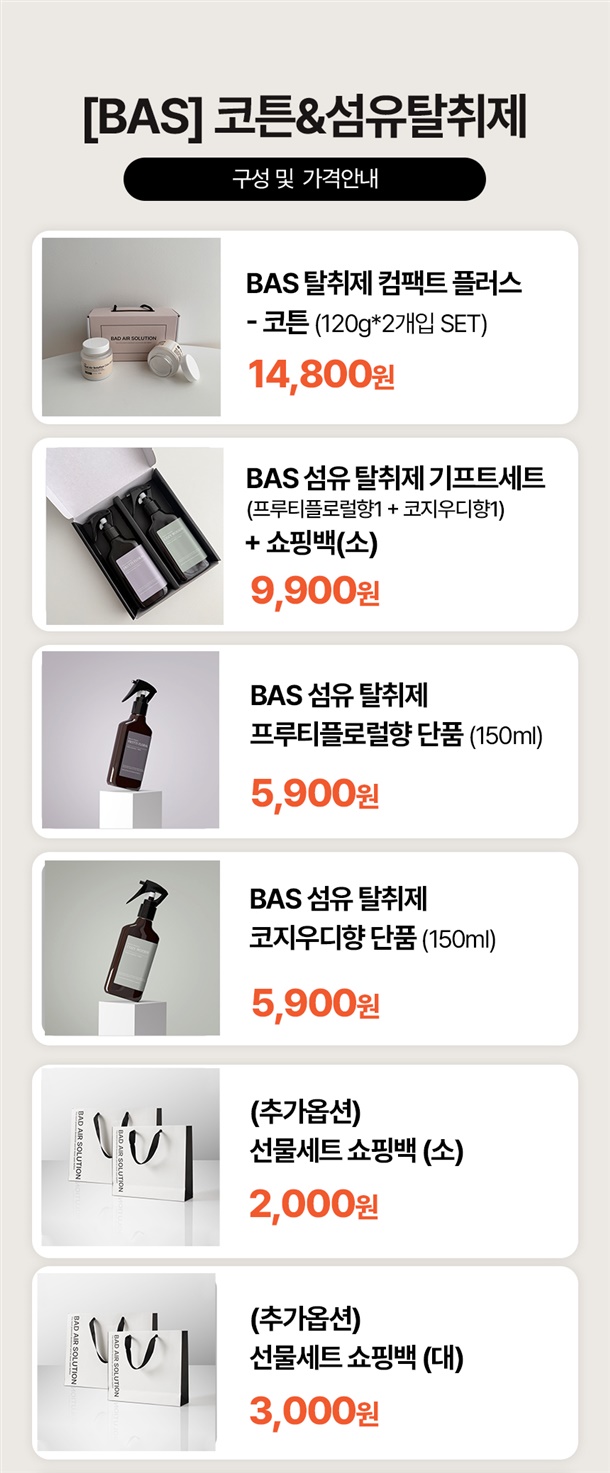 BAS 섬유탈취제 선물세트 (쇼핑백포함)
