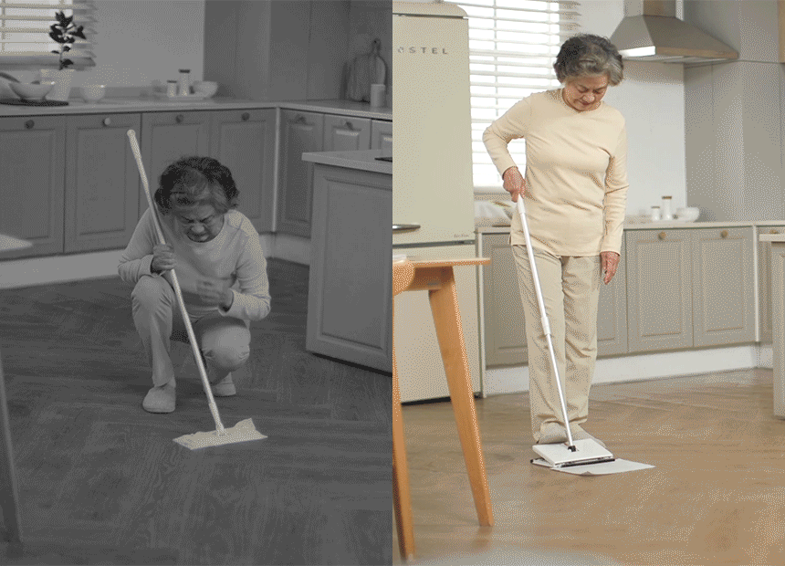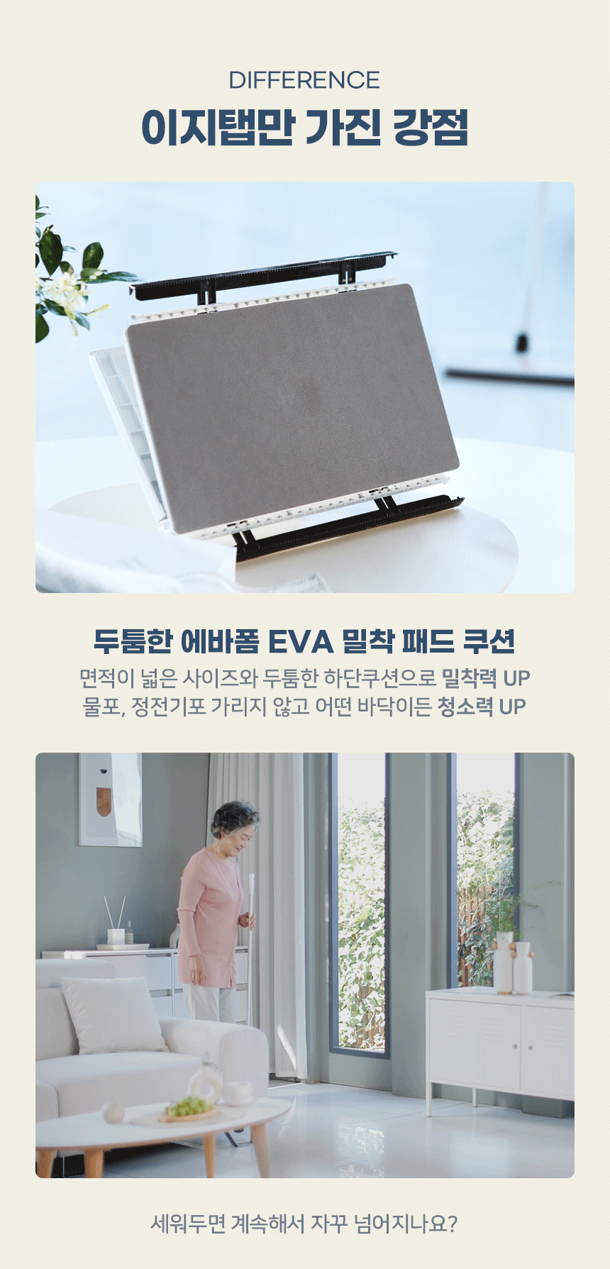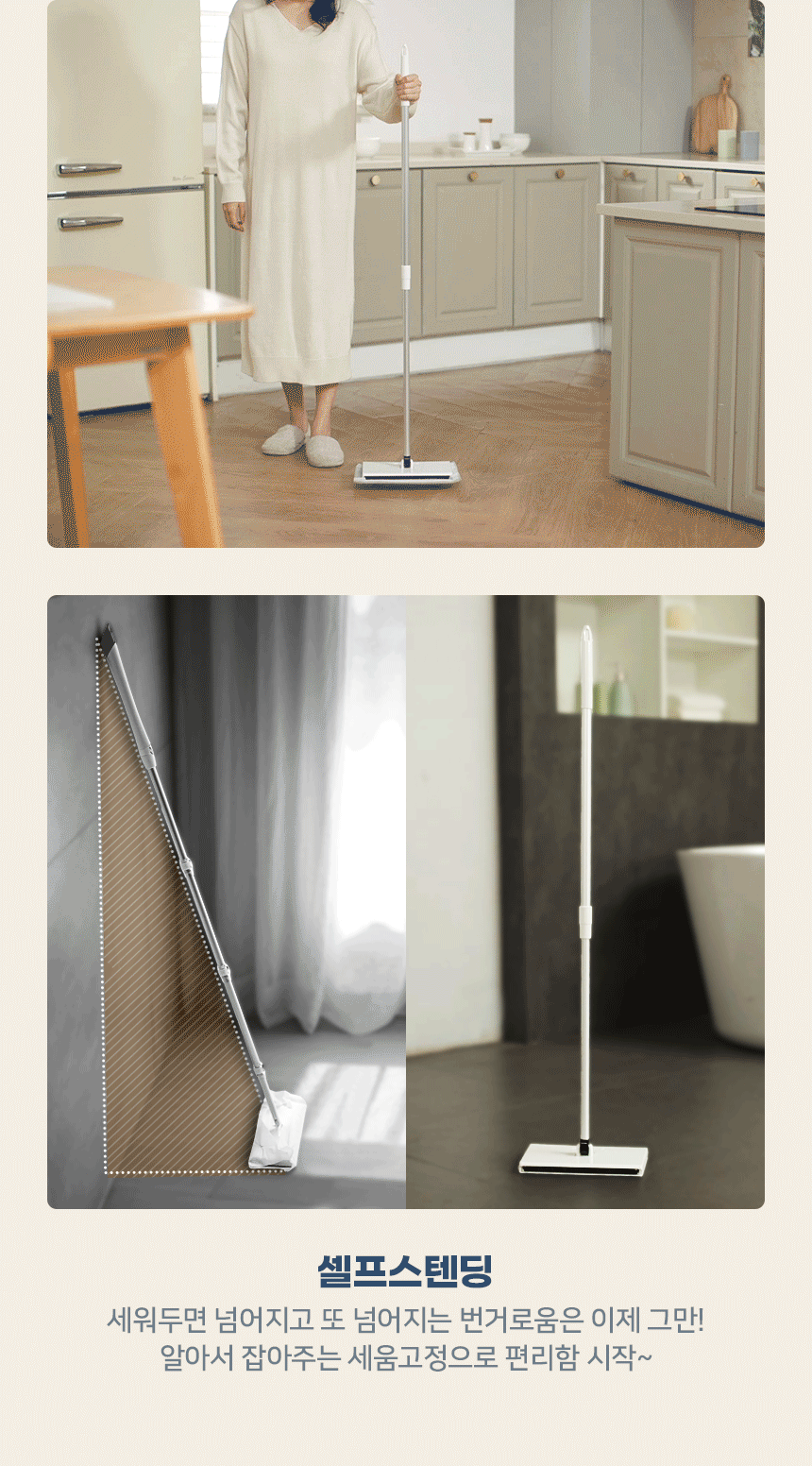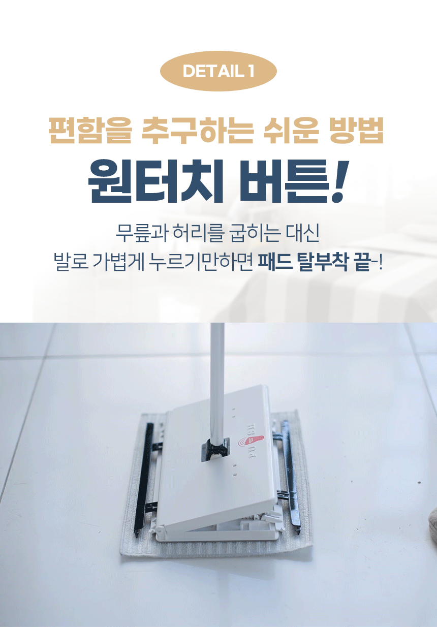 ✅발로 가볍게 두드리면 헤드 클립이 열리며 청소포를 잡아줘요!