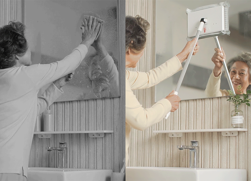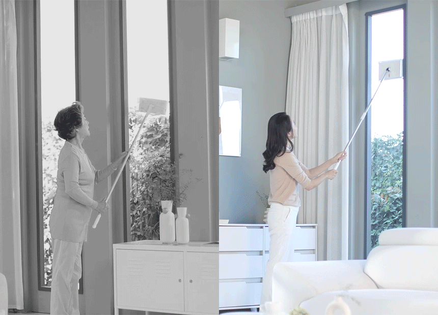 봉의 길이가 늘어나는 구조로 창문 청소도 가능